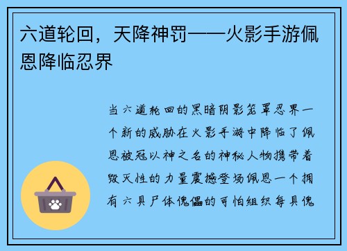 当六道轮回的黑暗阴影笼罩忍界,一个新的威胁在火影手游中降临了!佩恩,被冠以“神”之名的神秘人物,携带着毁灭性的力量,震撼登场。